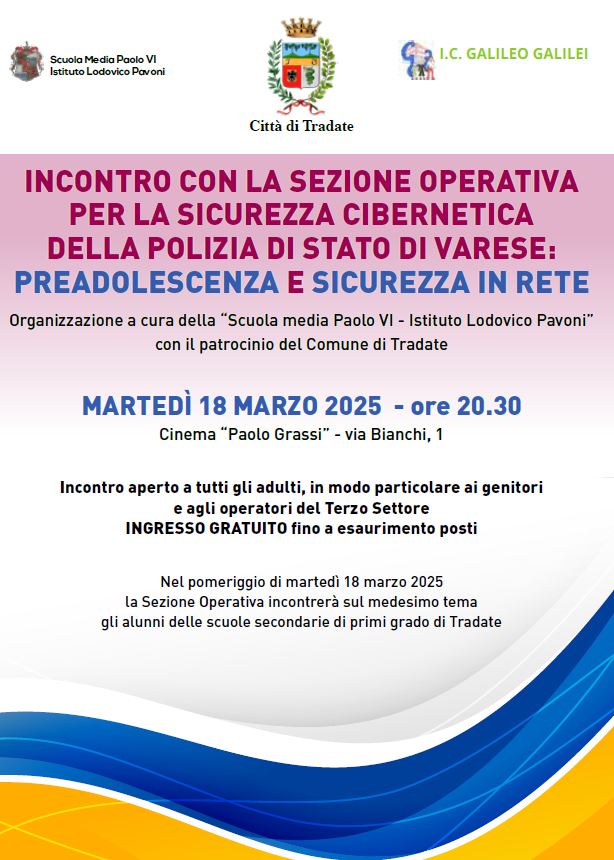 Nel pomeriggio di martedì 18 marzo 2025 la Sezione Operativa incontrerà sul medesimo tema gli alunni delle scuole secondarie di primi grado di Tradate (“Scuola media Paolo VI – Istituto Lodovico Pavoni” e “Istituto Comprensivo Galileo Galilei”)